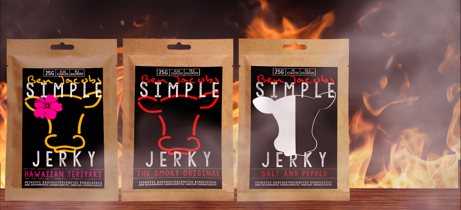 Du suchst nach einem eiweißreichen, fettarmen und unglaublich leckeren Snack? Simple Jerky steht für hochwertiges Beef Jerky aus besten Zutaten – perfekt für Sportler, Outdoor-Fans und Fleischliebhaber. Entdecke den echten Geschmack von handgefertigtem Trockenfleisch!