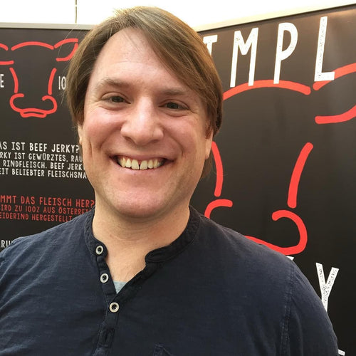 Ben Jacobs, Gründer von SimpleJerky, brachte seine Leidenschaft für authentisches Beef Jerky aus den USA nach Österreich. Inspiriert von Kindheitserinnerungen von kleinen, familiengeführten Shops im ländlichen Nordwesten von Conneticut kreiert er ein handgemachtes Jerky mit höchsten Qualitätsansprüchen, frei von künstlichen Zusätzen und aus lokalem Rindfleisch.