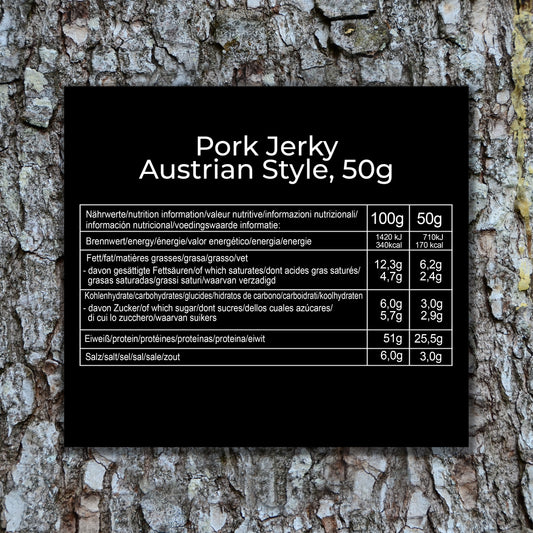 Für unser Beef Jerky verwenden wir ausschließlich Fleisch von österreichischen Rindern. Tierwohl steht für uns an erster Stelle: Unser Rindfleisch stammt von Weiderindern. Das ist nicht nur gut für die Tiere, sondern macht sich auch im Geschmack bemerkbar – magerer, mehr Omega-3-Fettsäuren und Antioxidantien, intensiver im Aroma als Fleisch von Getreidefütterung.